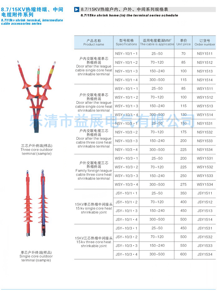 8.7-15KV三芯交聯戶內電纜終端頭價格只提供參考,實際價格請咨詢廠家熱線:0577-61732562