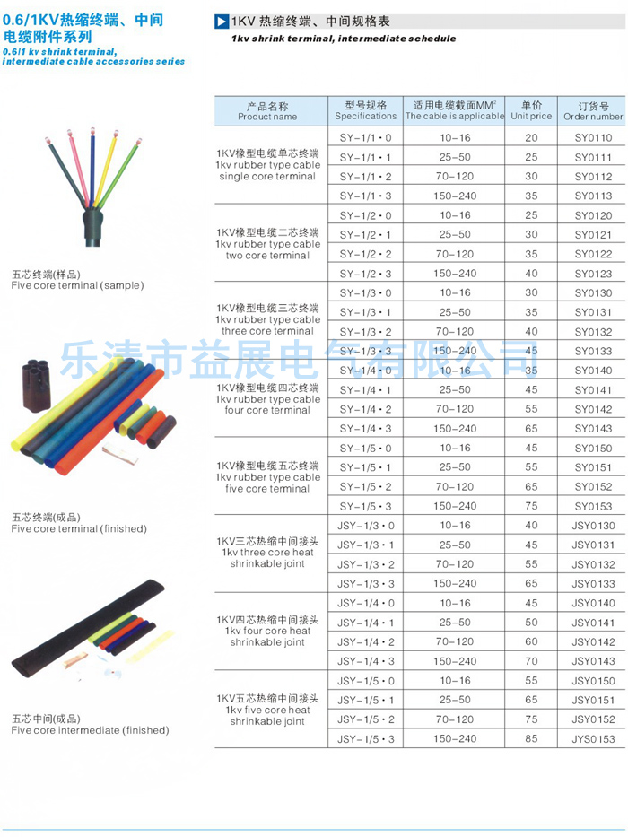 0.6-1KV五芯電纜終端頭價格只提供參考,實際價格請咨詢廠家熱線:0577-61732562