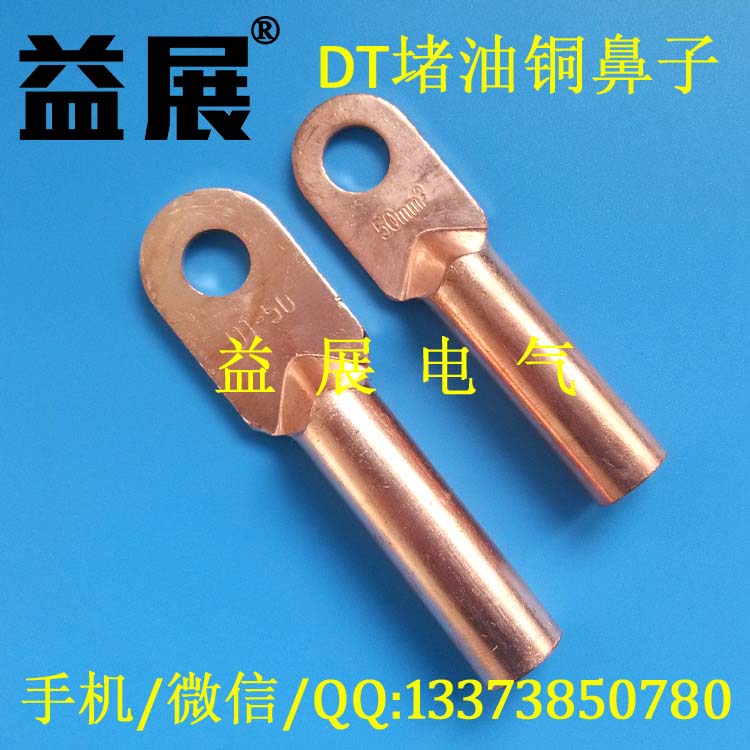 DT堵油銅鼻子,鍍錫銅鼻子產品細節 非標銅鼻子定做 主要適用范圍:廣泛應用于機床、紡機、電機、鐵路、船舶、電控,儀表、計算機和家用電器,電氣業,機械設備廠,船廠,配電柜配電箱等. 產品外觀規格良好,導電性能好,安全. 產品用途 : 適用于標稱截面1.5-1000平方,電氣電纜式電線的銅導體與電氣設備的連接. 產品特點: 長期工作溫度-55℃-150℃,表面鍍錫。 產品材質:紫銅管,表面處理:鍍錫